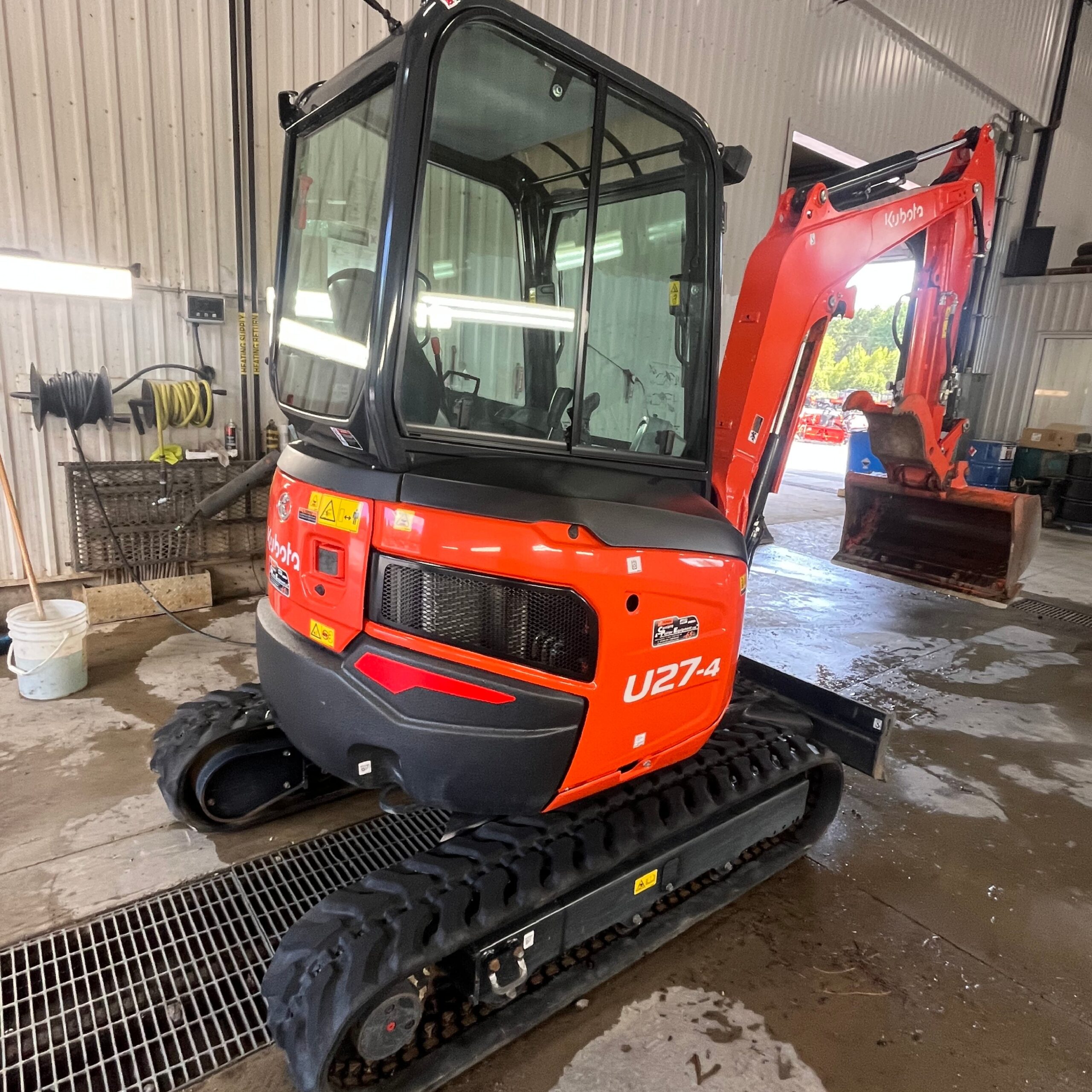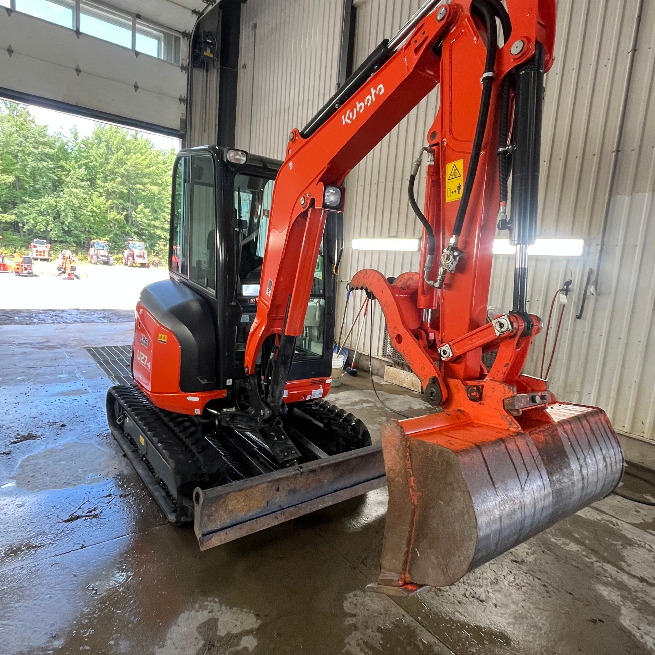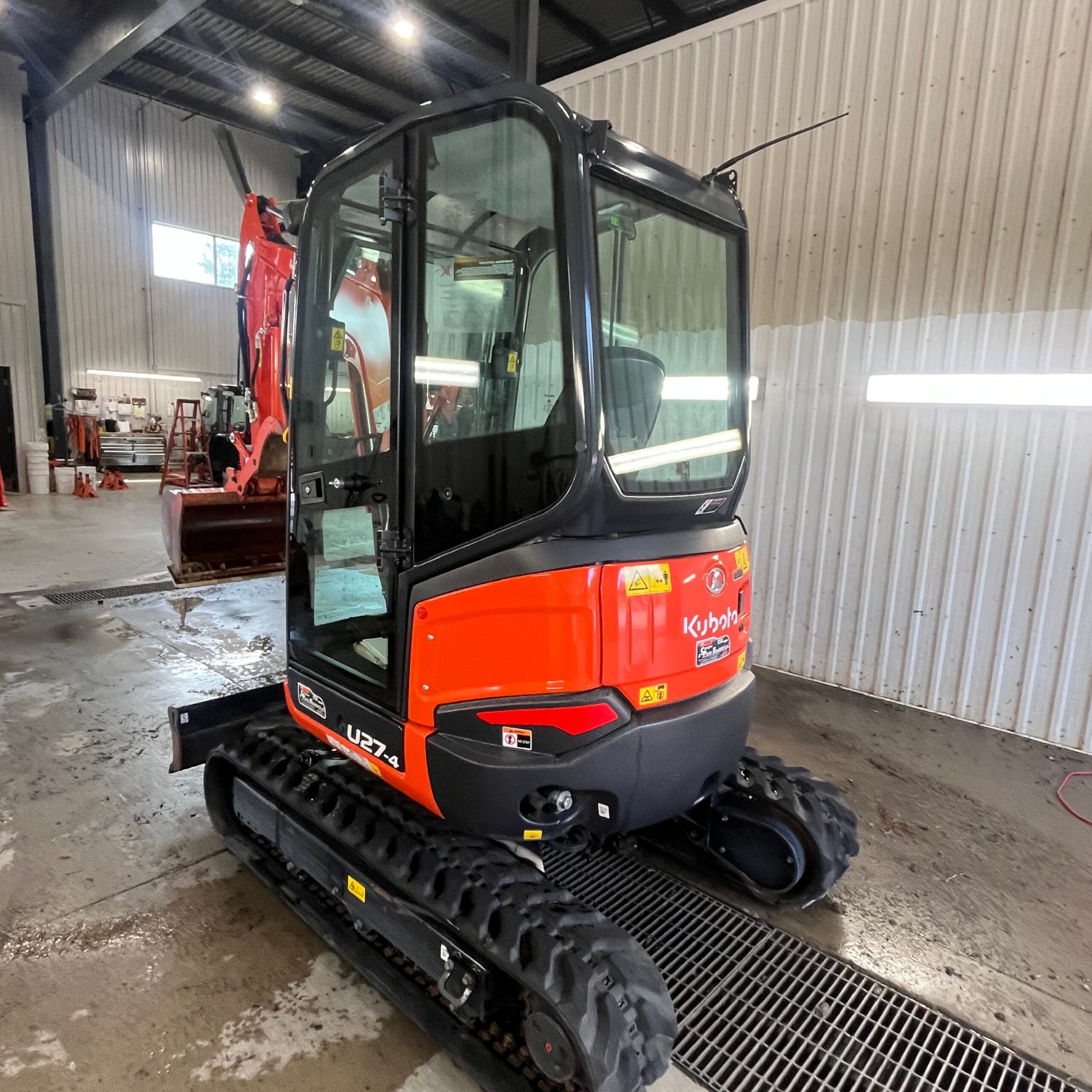 EXCAVATRICE USAGÉ KUBOTA U27-4G SUR CHENILLES DE CAOUTCHOUC, CABINE AVEC CHAUFFAGE, POUCE HYDRAULIQUE, ATTACHE RAPIDE, RADIO, 2 GODETS ( 24 ET 36 POUCES)