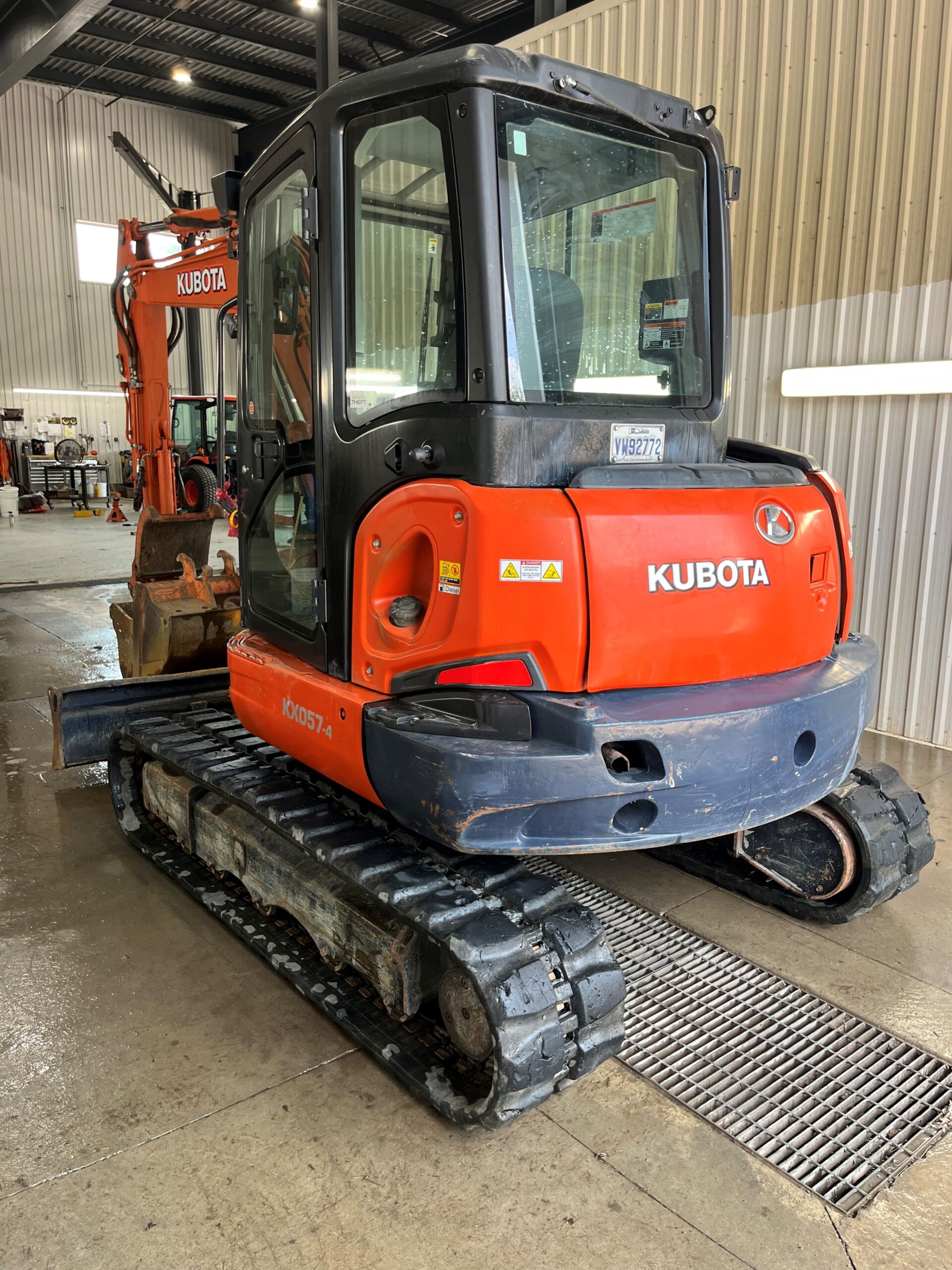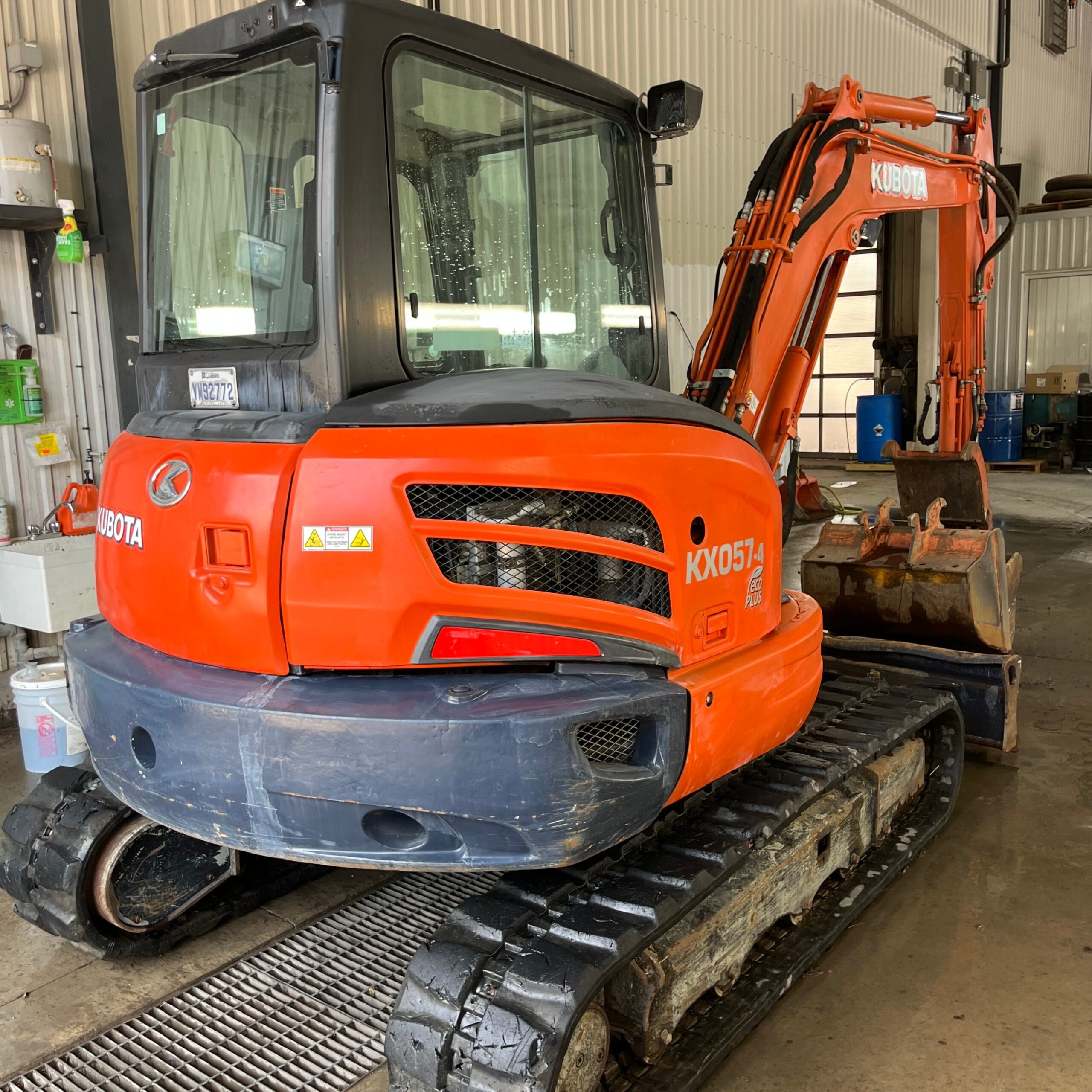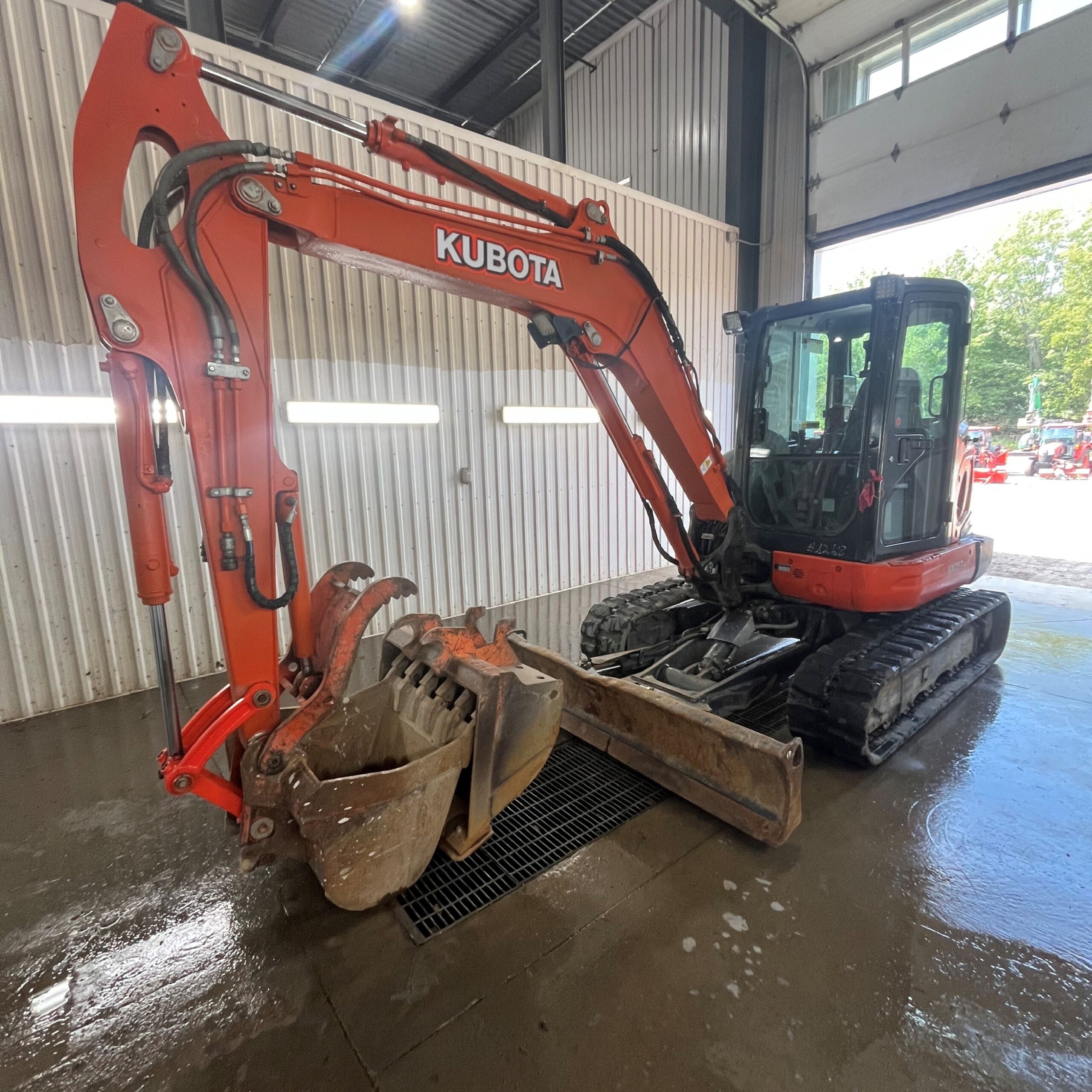 EXCAVATRICE USAGÉ KUBOTA KX057-4GA SUR CHENILLES DE CAOUTCHOUC, 2013, LAME AVEC ANGLE HYDRAULIQUE, CABINE AVEC AIR CLIMATISÉ ET CHAUFFAGE, ATTACHE RAPIDE, POUCE HYDRAULIQUE, 2 GODETS