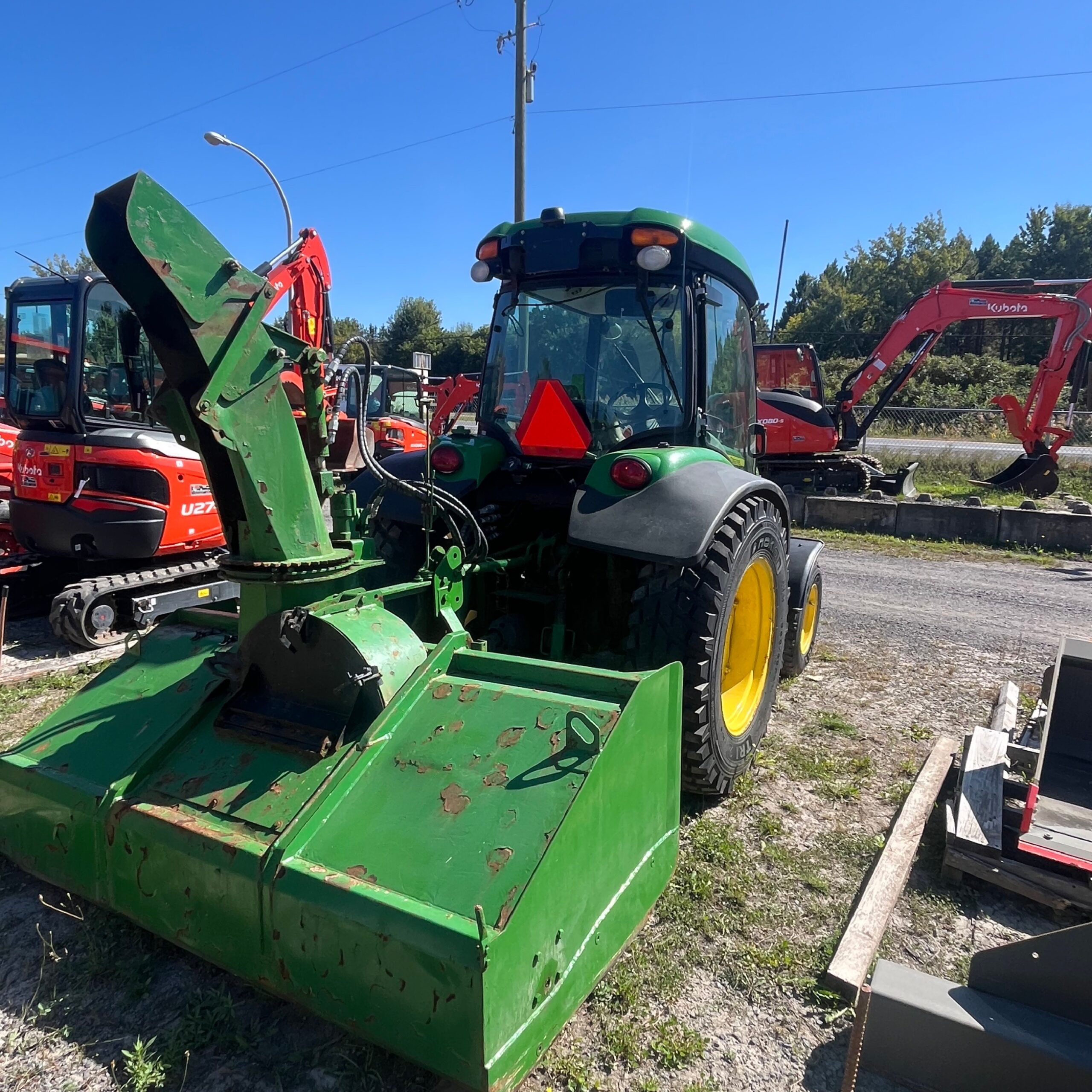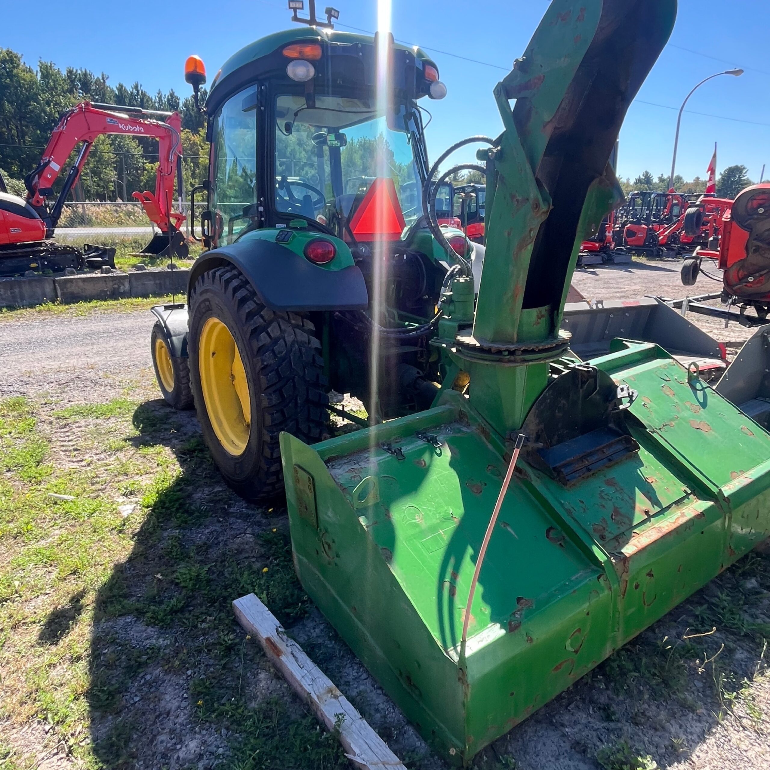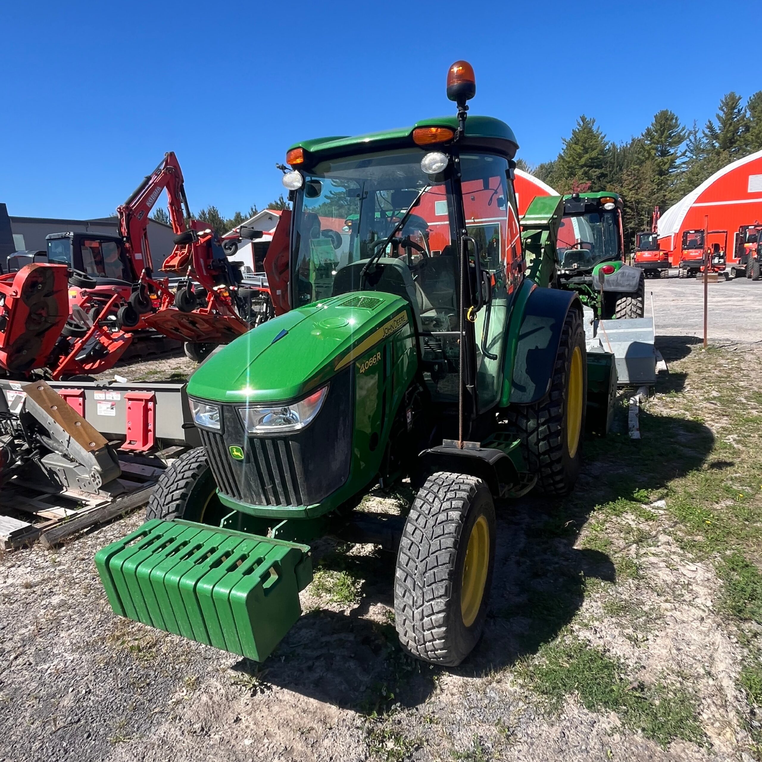 TRACTEUR 2020 4X4 USAGÉ JOHN DEERE 4066R, MOTEUR DIÉSEL, TRANSMISSION HYDROSTATIQUE, CABINE AVEC AIR CLIMATISÉ ET CHAUFFAGE, PNEUS NOKIAN, PESÉES AVANT, SOUFFLEUSE NORMAND N82-260HYB